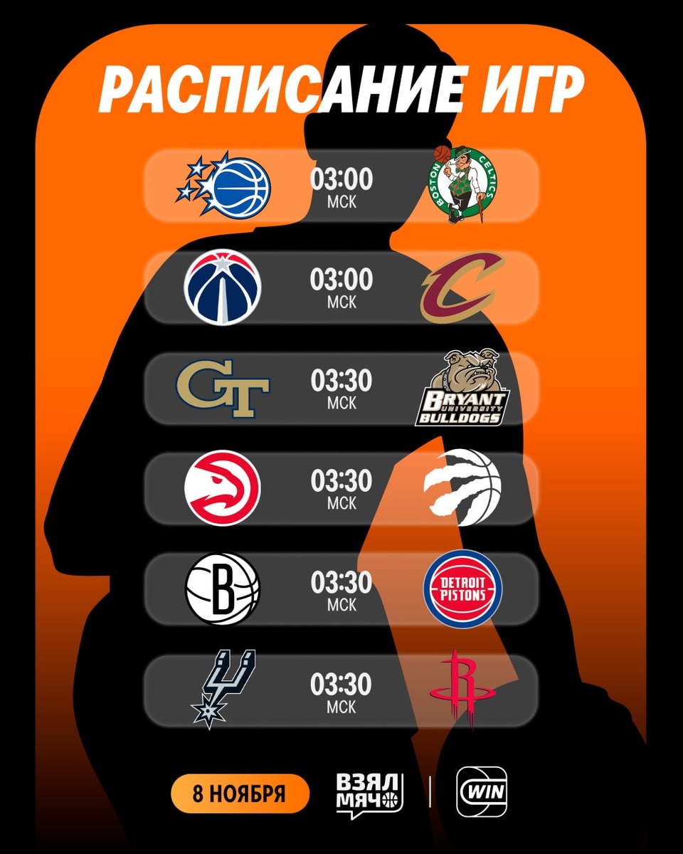 🤩 Кубок НБА возвращается! Этой ночью нас ожидают 11 матчей внутрисезонного турнира, а также игра Тимофея Рудовского: 03:00 | Орландо — Бостон 🎙 Иван Латышев 03:00 | Вашингтон — Кливленд 🎙 Андрей Протасов 03:30 | Georgia Tech — Bryant Bulldogs (ТИМОФЕЙ РУДОВСКИЙ) 🎙 Матвей Юдкин 03:30 | Атланта — Торонто 🎙 Артём Тихонов 03:30 | Бруклин — Детройт 🎙 Егор Родионов 03:30 | Сан-Антонио — Хьюстон 🎙 Сергей Абаев 04:00 | Майами — Шарлотт 🎙 Александр Зотеев 04:00 | Мемфис — Даллас 🎙 Дмитрий Хамидулин 04:00 | Милуоки — Чикаго 🎙 Степан Будяков 04:00 | Миннесота — Юта 🎙 Павел Воронин 06:00 | Денвер — Голден Стэйт 🎙 Дмитрий Матеранский 06:00 | Сакраменто — Оклахома 🎙 Андрей Протасов Все матчи в прямой трансляции смотрите в нашей группе ВК! 🏀 ПОДПИШИСЬ — ЗДЕСЬ ЖИВЁТ БАСКЕТБОЛ!