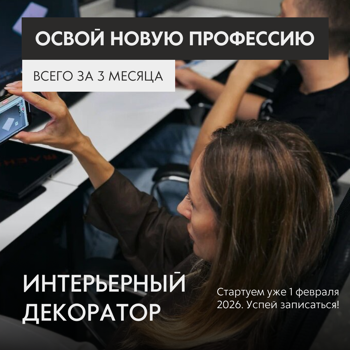 ⏳ Продолжительность: 3 месяца Начните карьеру в сфере дизайна с основ — курс «Декоратор» разработан для интенсивного погружения и практического старта. За три месяца вы освоите ключевые навыки: работа с текстурами, цветом, светом и аксессуарами; научитесь подбирать декор и корректно оформлять пространство 🎨; примете участие в выездах на реальные объекты и получите поддержку куратора 👥; завершите курс с собственным портфолио 📁. Этот формат оптимален, если хотите быстро войти в индустрию и начать действовать. Преимущества:
