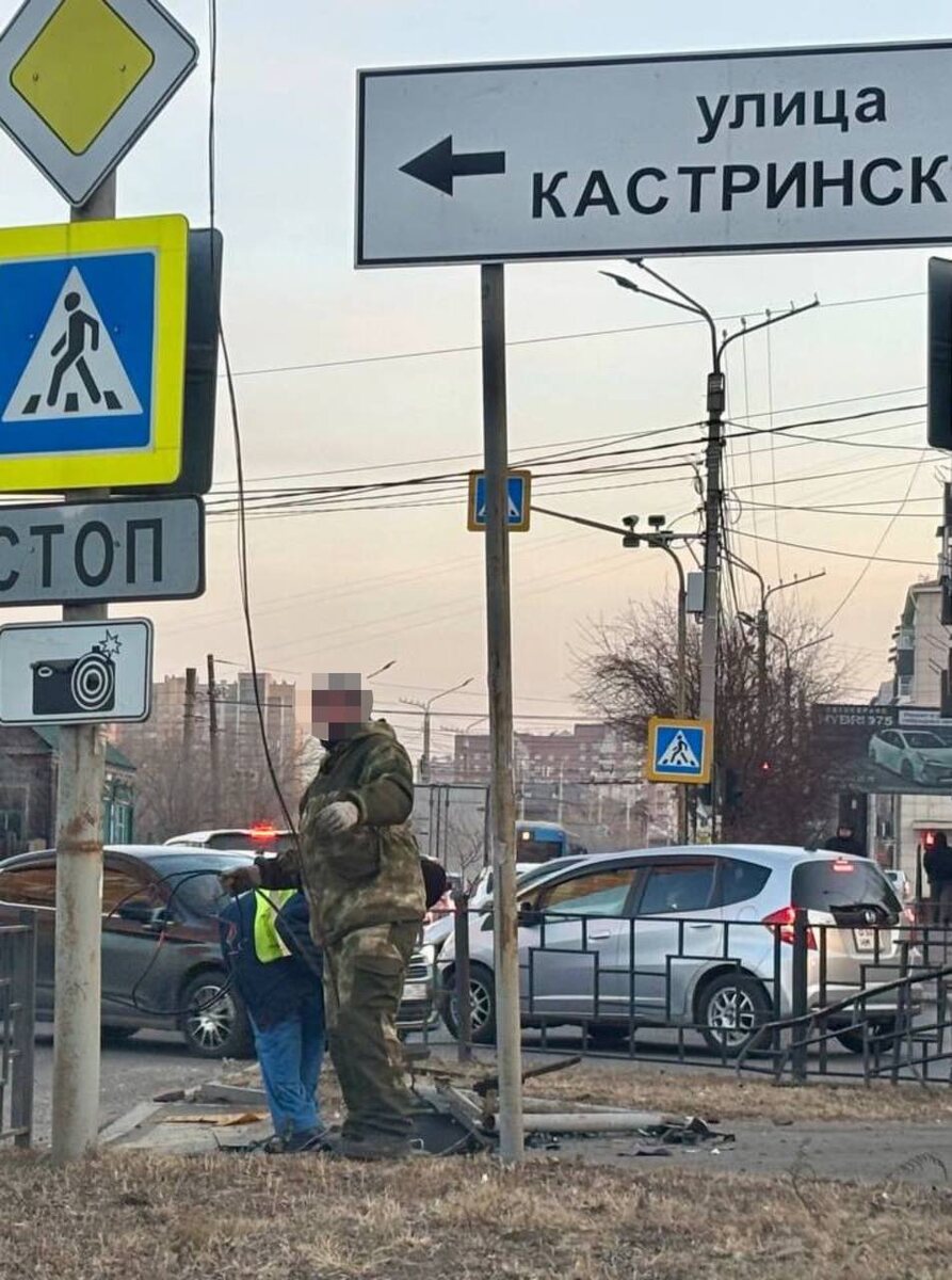 В центре Читы ночью снесли светофор — виновнику придется платить за ремонт