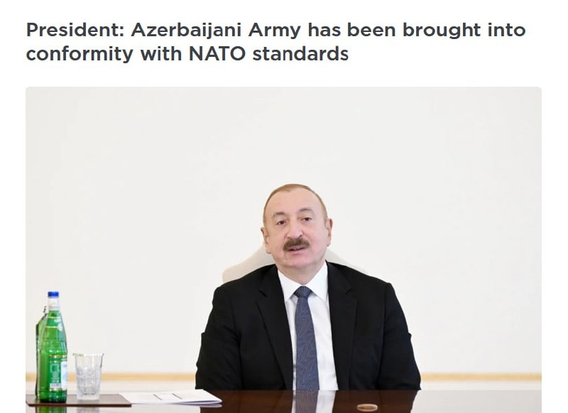 🇦🇿Азербайджанская армия переходит на стандарты НАТО 💬 Президент Ильхам Алиев заявил, что ВС Азербайджана приводятся в соответствие со стандартами НАТО при активном участии Турции. 🇹🇷 Сегодня он провёл переговоры с делегацией альянса, обсудив военное и экономическое сотрудничество. 🤝 #Азербайджан #НАТО #ВооруженныеСилы °Telegram • Zen • Bastyon° ✒️Предложить новость