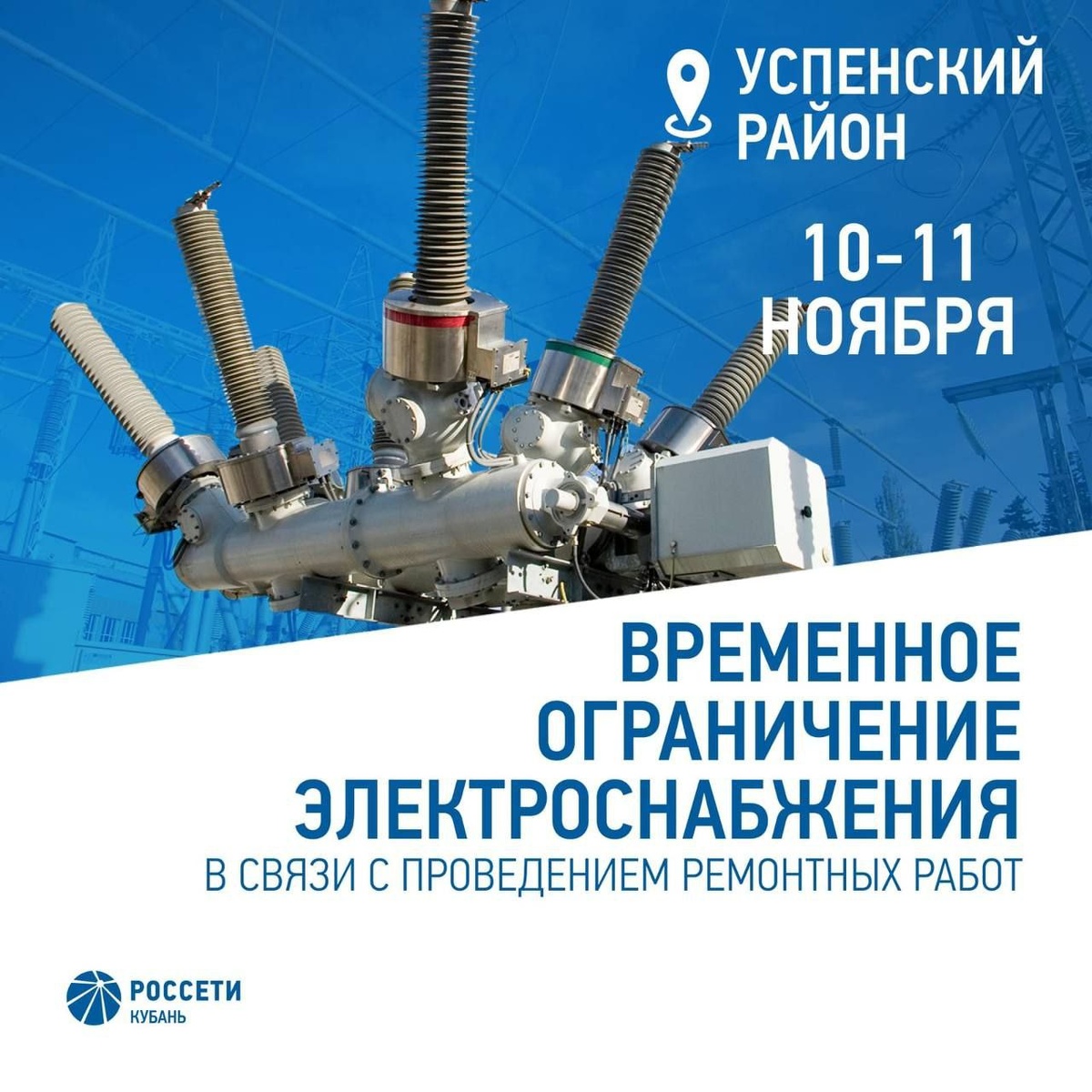 🔊Успенский РЭС Армавирского филиала «Россети Кубань» информирует! В связи с плановыми работами на энергооборудовании планируется локальное