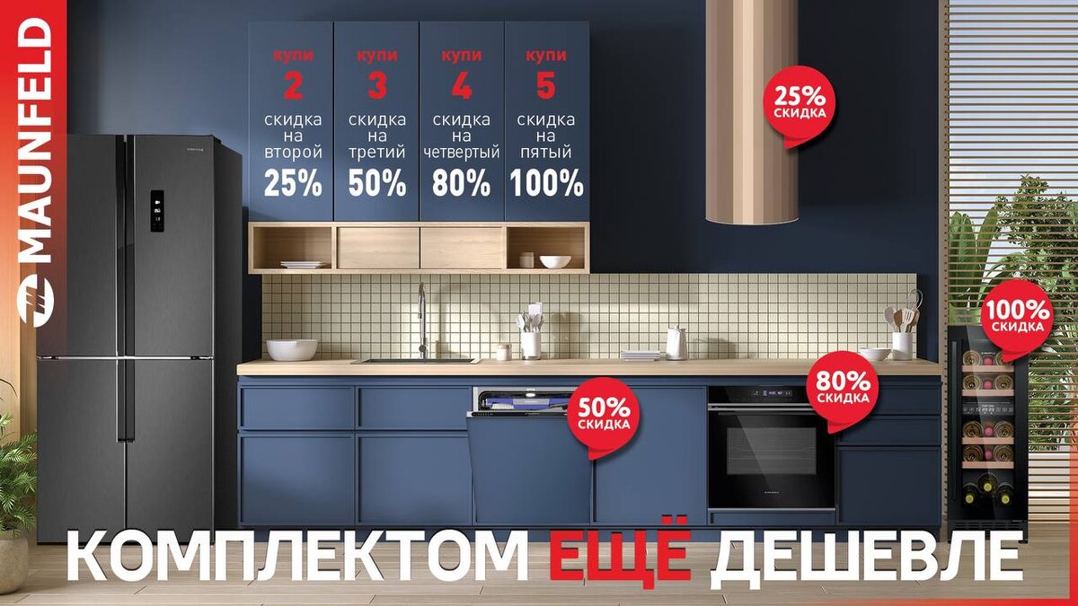 При покупке комплекта из 2-х приборов бытовой техники Maunfeld вы получаете скидку в размере 25% от стоимости второго прибора с наиболее