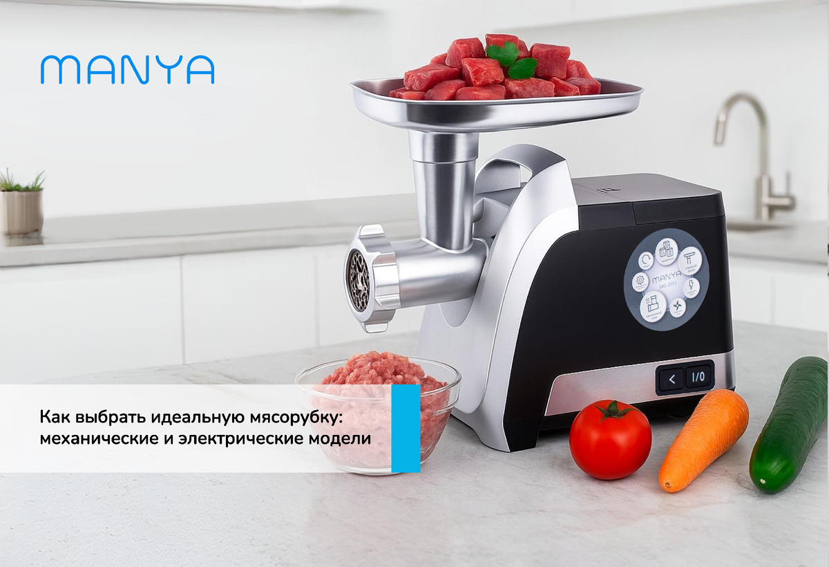 Мясорубка – незаменимый помощник на кухне! Быстро и качественно приготовить фарш, а может быть даже сосиски, колбаски, другие деликатесы, нашинковать капусту и морковку - современные модели значительно отличаются от своих предшественников, предлагая множество дополнительных функций и возможностей. Механические: это всем знакомые бабушкины приборы, которыми многие пользуются и по сей день. У них простая и понятная конструкция, они долговечны и почти не ломаются, компактные и не дорогие, при этом позволяют перерабатывать практически любое мясо. Но при работе с ними требуются определенные физические усилия (помните, бабушки звали дедушек прокрутить мясо?) и, конечно, процесс переработки обычно занимает значительное время. Электрические: мощные, производительные, многофункциональные. В современных электрических мясорубках обычно есть реверс (обратное вращение для удаления застрявших кусков), защита от перегрузки, автоматическое отключение при блокировке шнека), дополнительные насадки и