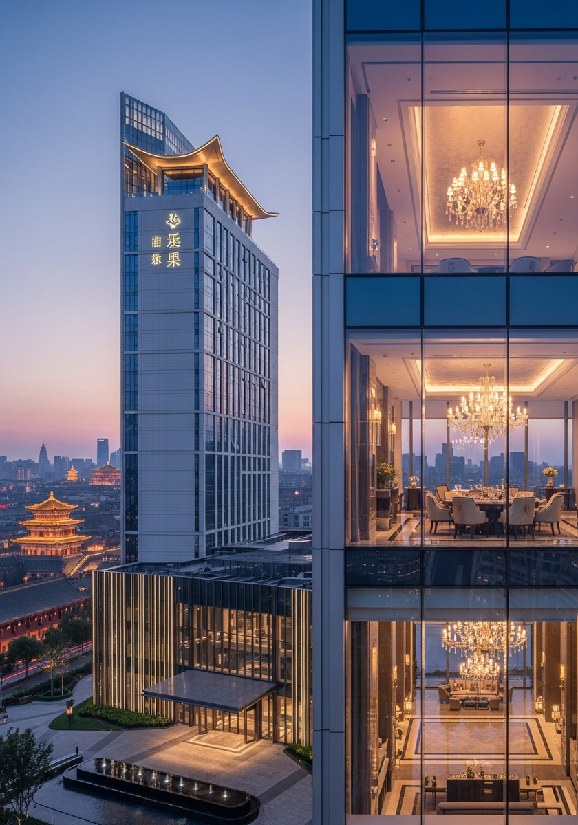 Комплекс сочетает современный стиль с элементами традиционной китайской архитектуры, предлагает 565 просторных номеров и люксов, множество ресторанов с блюдами мировой кухни и местными деликатесами. Гости отмечают идеальное расположение для посещения достопримечательностей, высокий уровень сервиса и комфортабельные номера.