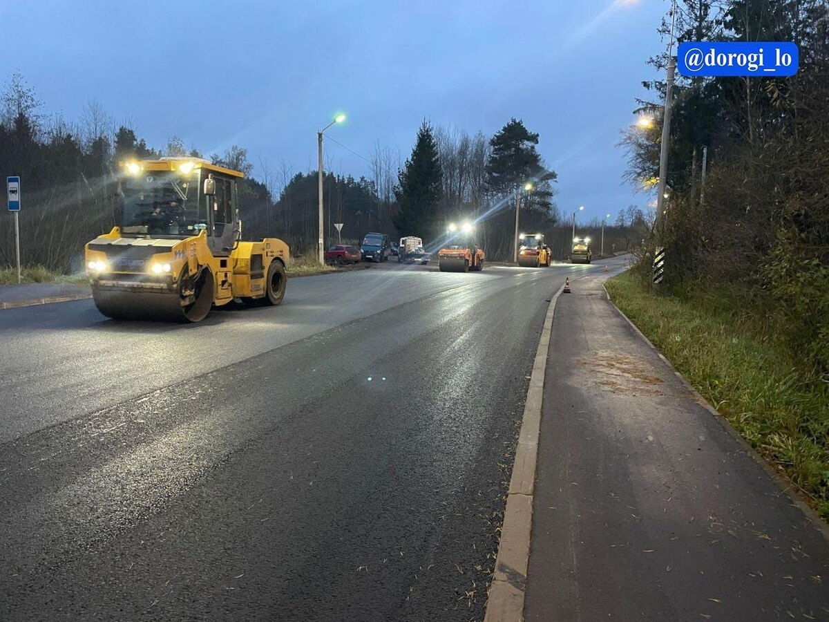 Дорожники уложили два слоя нового асфальта на дороге от Кингисеппа в Порхово