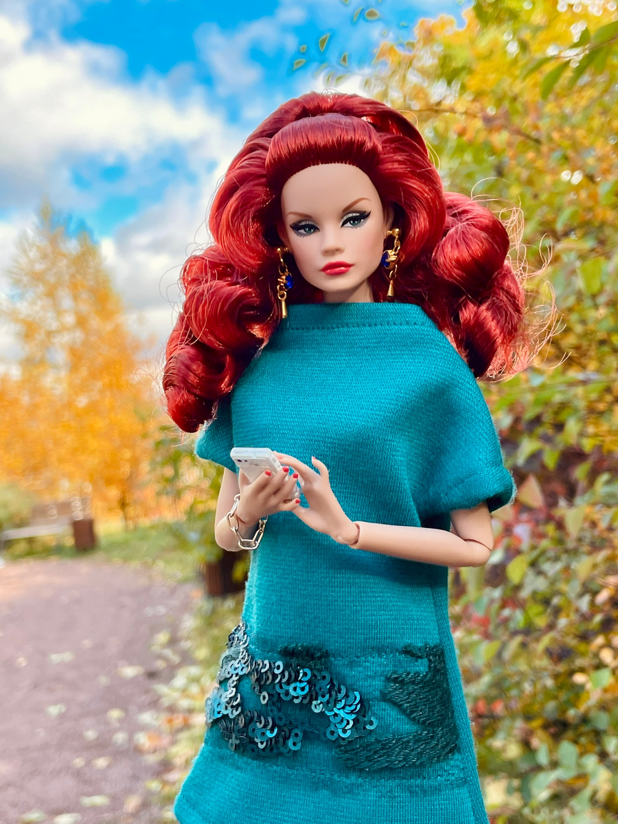 📞 Мэри быстрым шагом шла по улице, усыпанной ковром из золотых кленовых листьев, прижимая к уху телефон. На улице было ветрено, но её безупречная укладка оставалась идеальной. «Да, конечно, я сейчас уточню расписание мастера», — ответила она клиенту и поставила вызов на удержание, одновременно проверяя сообщение от шефа в мессенджере. Мэри на секунду остановилась у витрины, поправила элегантное бирюзовое платье и улыбнулась своему отражению — выглядеть безупречно было частью её профессии. «Записала вас на 12 часов, будем вас ждать!», — она повесила трубку, но телефон тут же снова зазвонил. На этот раз это был её молодой человек: «Заеду за тобой после работы? Поужинаем?» Девушка рассмеялась: надо же, во всей этой рабочей кутерьме ещё остаётся место для приятных звонков! «Я сегодня до восьми», — тряхнув волосами, сказала она. Платье: фабрика "ВИАНА" #ITDoll #IntegrityToys #FashionRoyalty #NuFace #ИнтегритиТойс #GingerGilroy