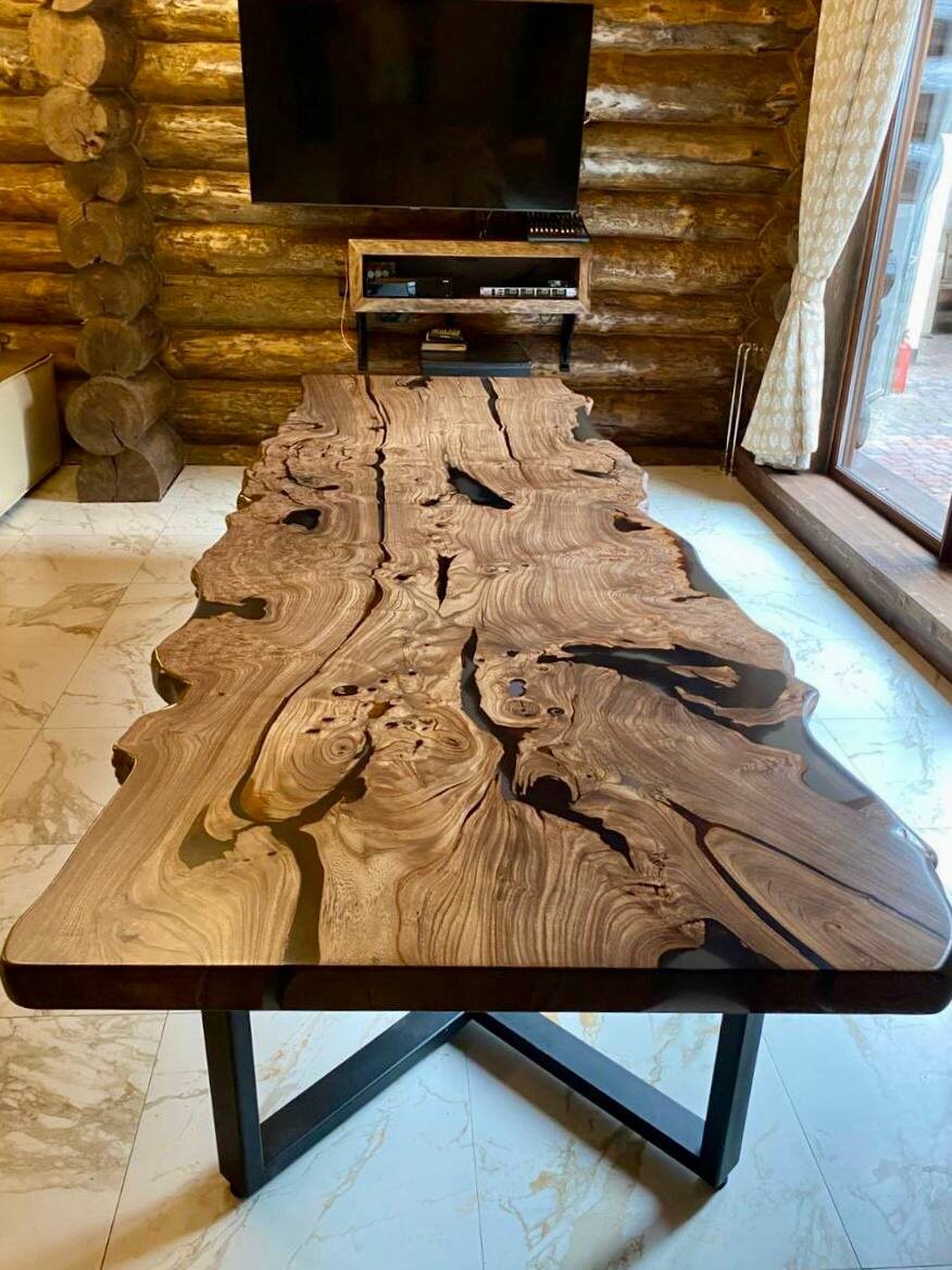 Друзья, 250 кг счастья могут выглядеть вот так!🤎🧡🩶🖤 Брутальный красавец палисандрового цвета с серо-дымчатыми реками для теплых душевных встреч и уютных застолий🤗 Обеденный стол из капового карагача в интерьере. О некоторых этапах его создания было на нашем канале 👉🏻 здесь и здесь; 👉🏻тут и тут #мебельдлядома #обеденныйстол #ручнаяработа #lucazzo