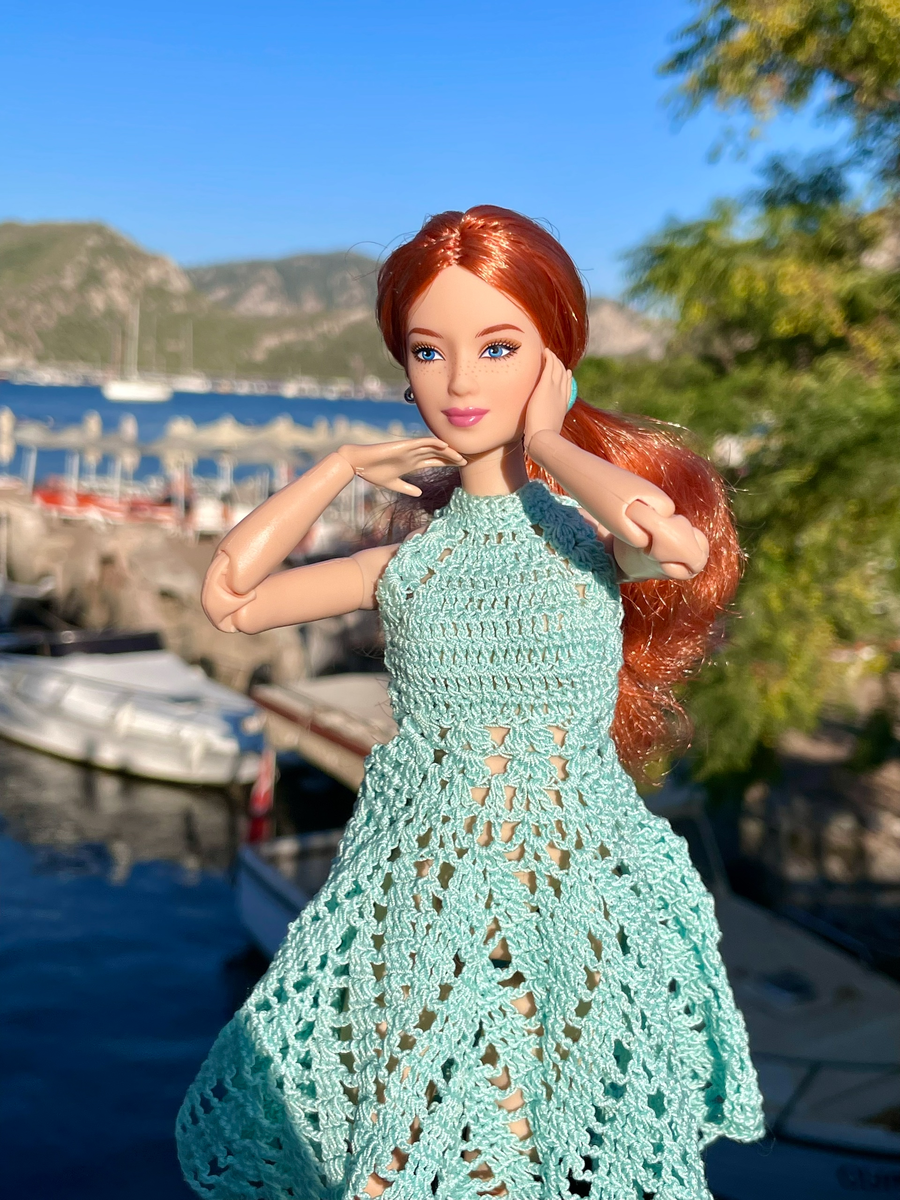 Поллианна сидела на деревянном причале и смотрела, как в прозрачной воде мелькают серебристые рыбки 🐠 Жаркое солнце грело плечи, а лёгкий бриз приносил солёный аромат моря. В Ичмелере всё было таким уютным и неспешным — маленькие лодки покачивались у берега, а горы вокруг бухты создавали ощущение защищённости. Поллианна протянула руку к воде, и любопытная рыбка подплыла совсем близко, словно хотела поздороваться. «Вот бы остаться здесь подольше, — мечтательно подумала она, — как жаль, что отпуск скоро заканчивается...» Она осталась здесь до заката, слушая как волны тихо шепчутся с обитателями моря, рассказывая свои истории 🌊 Платье: #своими_руками #barbie #barbiebasic #matell #кукла #барби