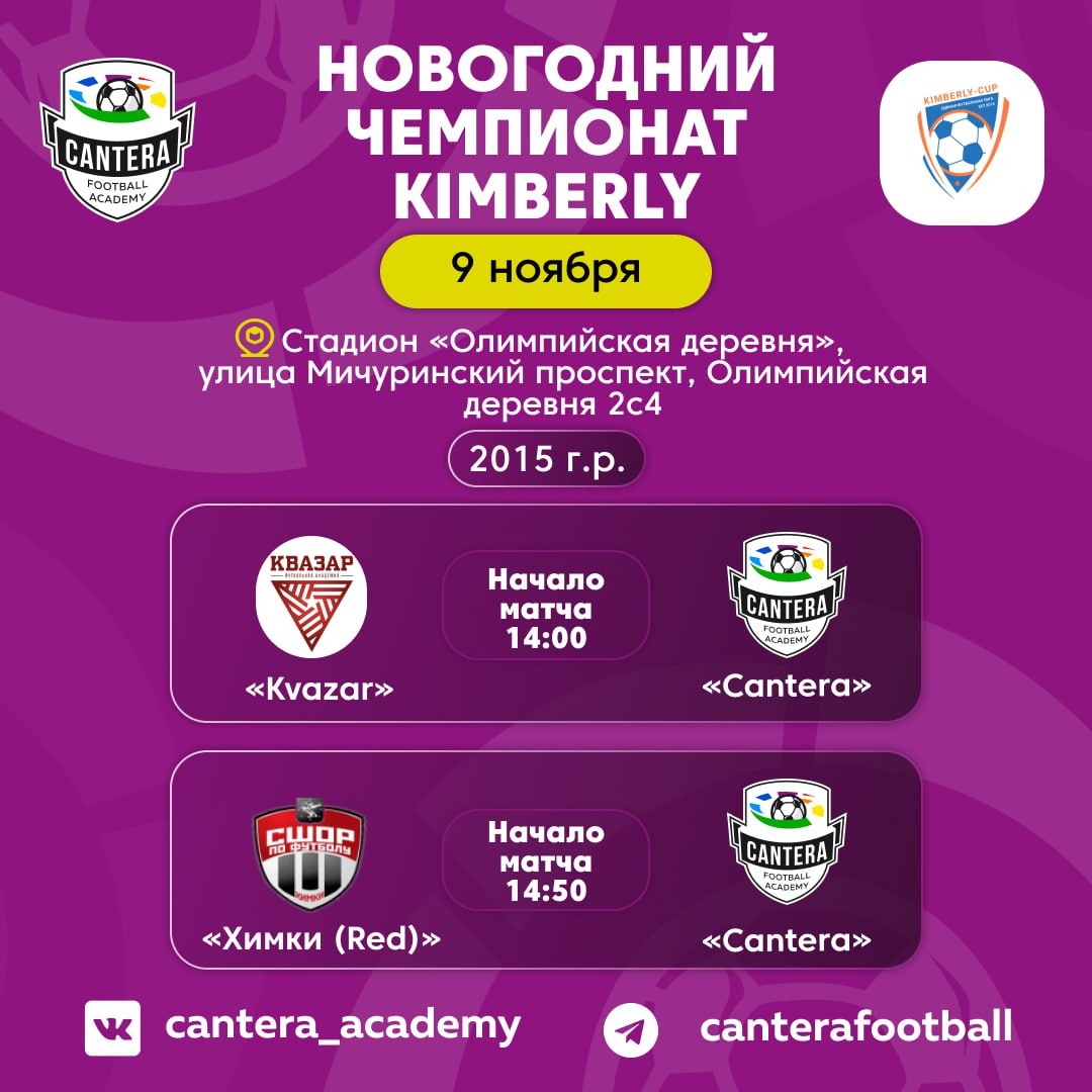 Расписание на выходные 🏆 Помимо Новогоднего Чемпионата Winnergy Cup начинаем путь в Kimberly Cup! Впереди много игр, а значит и голов 🎄 VAMOS CANTERA!❤️💛