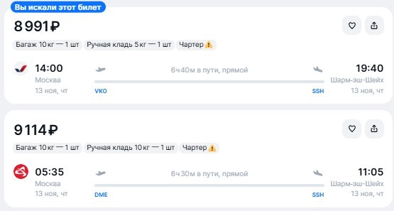 ✈️Москва - Шарм-эль-Шейх (Египет), в одну сторону от 9000 рублей с багажом до 10 кг 13 ноября - https://checkintime.ru/rq0j 🏖 Поиск туров | ✈️Авиабилеты