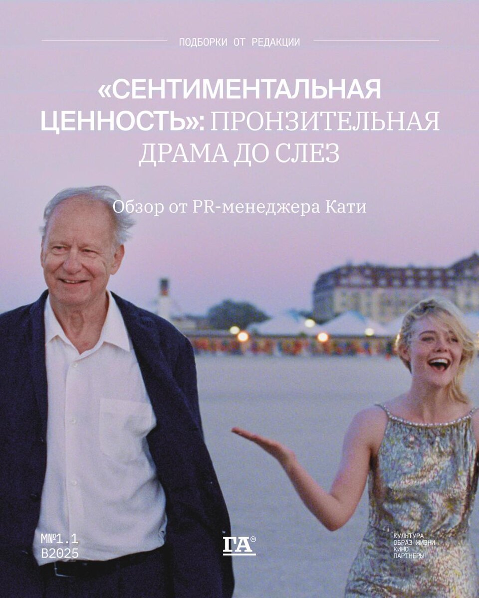 Как исцелить семейные раны Есть фильмы, которые не просто смотришь, а проживаешь. Именно таким стал для меня «Сентиментальная ценность» Йоакима Триера — картина, уже отмеченная Гран-при в Каннах-2025 и готовящаяся бороться за «Оскар»-2026 от Норвегии. Мне посчастливилось побывать на предпоказе от A-ONE, и я до сих пор под впечатлением. Это сильное и честное кино о жизни в дисфункциональной семье, о той хрупкой близости и уязвимости, что прячется за давними обидами. Да, в сюжете может быть некоторый элемент предсказуемости, но это совершенно не важно, потому что фильм цепляет за живое главным вопросом: как найти в себе силы простить близкого человека, если он причинил тебе глубокую боль? Признаюсь, в нашем зале плакали буквально все. Видимо, эта тема оказалась близка и понятна многим. Отдельный восторг вызвала игра актеров. Невероятный Стеллан Скарсгард вновь доказывает, что он великий мастер, а Ренате Реинсве и Эль Фаннинг создают удивительно тонкие и правдивые образы. Сюжет таков: