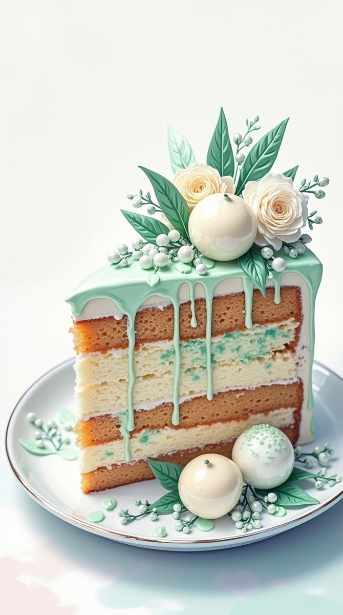 Кусок бисквитного мятного торта со стекающей глазурью. Нейросеть: Leonardo. Preset: Flux Dev. #цифроваяживопись #нейросеть #рисунок #нейроарт #арт #идеи #цифровоефото #SD #нейрофото #артыотнейросетей #digitalart #DigitalDreamscapes #leonardo #нейроSD #ai #иллюстрация #бесплатныйарт #торт #еда #aiartwork #бисквит #глазурь #цветы #мята