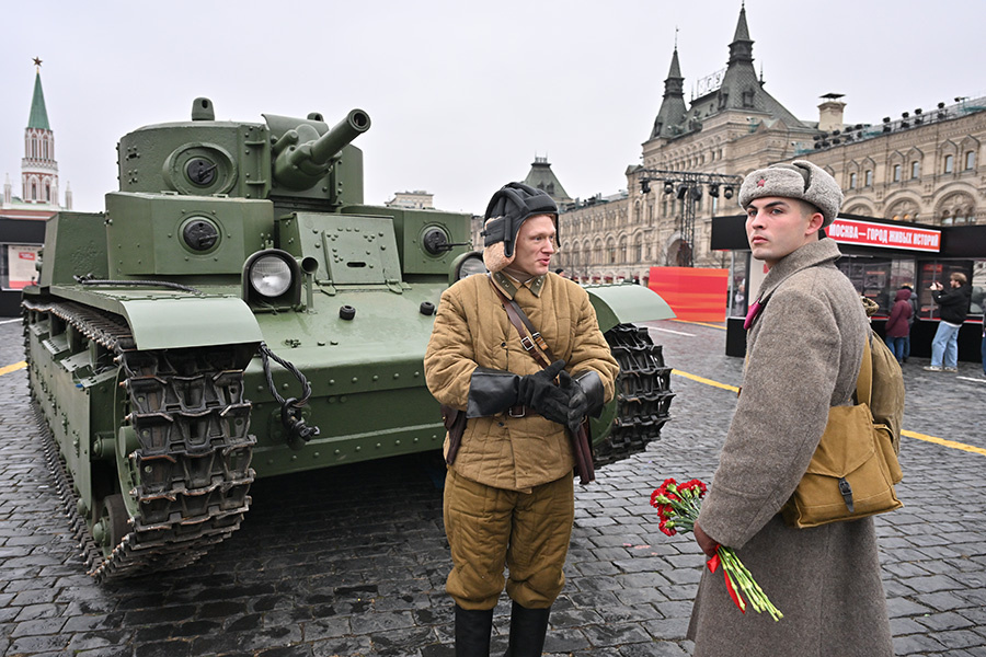 В мессенджере "Макс" Сергей Собянин поздравил ветеранов и москвичей с годовщиной военного парада. Отметив, что 7 ноября 41 года навсегда вошло в летопись Великой Победы. Мэр Москвы подчеркнул, что "мы никогда не забудем героизм и стойкость защитников Родины". А также пригласил посетить уникальный музей под открытым небом. Который открылся сегодня на Красной площади. Парад на Красной площади в 41 году готовили в режиме сверхсекретности. Ведь над Москвой летали немецкие самолеты. Но провести его было необходимо, чтобы поднять дух солдат. В память о том непростом времени - выставка под открытым небом. В этом году под названием "Город живых историй". "Мы рассказываем о наших москвичах, о наших ратных династиях, тех, которые воевали тогда, у которых воевали дальше сыновья, например, в Афганистане. И как раз внуки сейчас являются героями или участниками специальной военной операции. То есть мы рассказываем про тех, кто в те года и сейчас ковали и куют ту самую победу", - отметила Екатерина Д