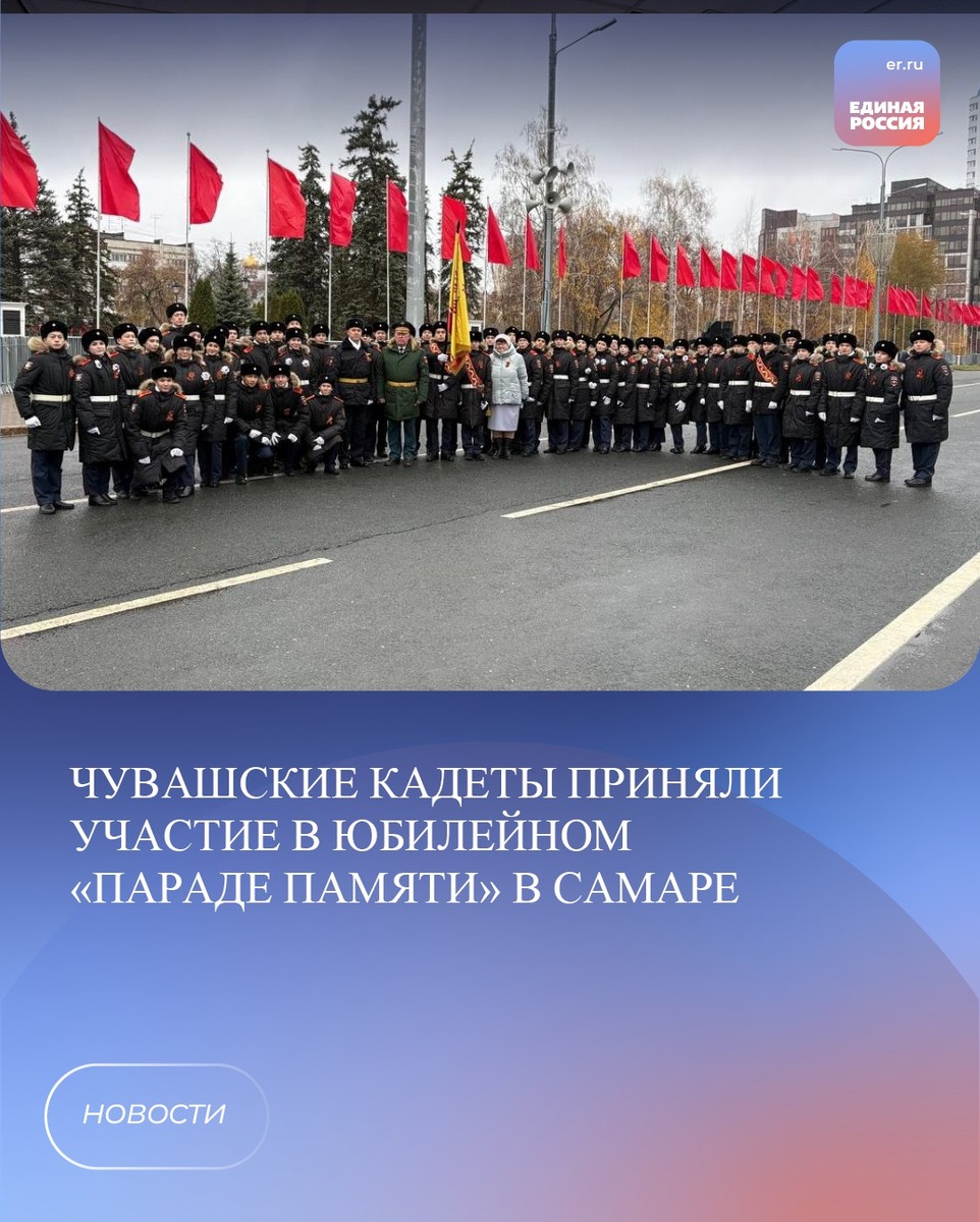 В Самаре в 15-й раз прошел «Парад памяти». Лучшие курсанты и кадеты со всей России прошли торжественным маршем по центральной городской площади Куйбышева в сопровождении военного оркестра Минобороны России. Масштабное событие проводится в рамках проекта «Историческая память» партии «Единая Россия». Парад Памяти проводится ежегодно и является одним из самых масштабных патриотических событий Приволжского федерального округа и России в целом. От Чувашии в нем принял участие парадный расчет МБОУ «Кадетская школа имени генерал-майора милиции В.А. Архипова» города Чебоксары. «Юные кадеты нашей республики более 10 раз выезжали на Парад Памяти и знают: это истинная честь и большая ответственность. Они неизменно показывают высокий уровень подготовки, дисциплины и патриотизма!» - отметил Секретарь Чувашского регионального отделения партии «Единая Россия» Леонид Черкесов. #ИсторическаяПамять #ЕР21 #ЕРЧувашия