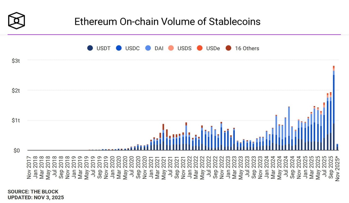 Общий объем стейблкоинов, выпущенных в сети ETH, демонстрирует уверенный рост и достигает новых исторических максимумов