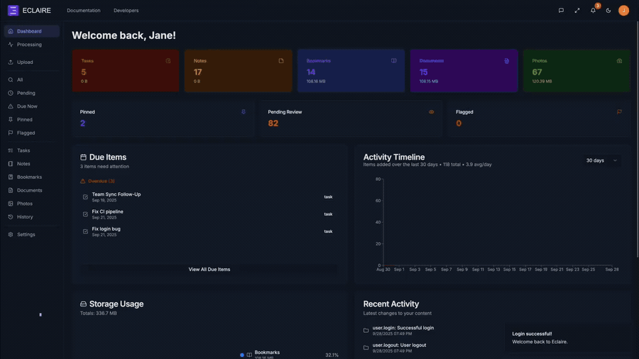 Eclaire — это локальная система искусственного интеллекта, находящаяся на стадии предрелиза и ориентированная на организацию, поиск и автоматизацию задач. Проект представляет собой открытое, кроссплатформенное решение, объединяющее различные типы данных в одном месте и предоставляющее пользователю полный контроль над хранением и обработкой информации. * Самостоятельный хостинг: Eclaire устанавливается локально — на собственный сервер, ПК или NAS. Все данные хранятся у пользователя, что обеспечивает высокий уровень приватности и безопасности. * Поддержка различных типов данных: Система позволяет работать с задачами, заметками, документами, изображениями, закладками и другими форматами, объединяя их в едином интерфейсе. * Кроссплатформенность: Приложение совместимо с Windows, Linux и macOS, поддерживает установку как PWA (Progressive Web App), а также взаимодействует с мобильными устройствами через Shortcuts и Tasker. * Интеграция через открытые API: Eclaire предоставляет REST-совместимы