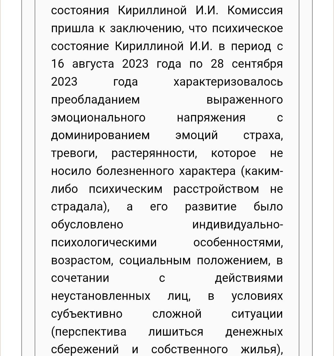 👤 А бабок тем временем начинают «заворачивать» — суд отменил решение о возврате квартиры пенсионерке, признав ее дееспособной Верховный Суд Якутии вынес окончательное решение по громкому делу о продаже квартиры пенсионерки Кириллиной. · Что было: пенсионерка Кириллина И.И. через суд требовала признать недействительной сделку по продаже своей квартиры Аргуновой О.В. — пенсионерка утверждала, что на момент сделки не понимала значения своих действий из-за преклонного возраста и давления мошенников, которым ранее перевела крупную сумму денег. ⚠️ Первое решение: иск был удовлетворен, квартиру велели вернуть пенсионерке, сославшись на заключение местной судебно-психиатрической экспертизы. ⚠️ Апелляция: ответчики обжаловали это решение, указав на нарушения, была назначена повторная экспертиза в специализированном учреждении Владивостока. Согласно новому экспертному заключению, в период заключения всех договоров Кириллина не страдала психическим расстройством и была способна понимать знач