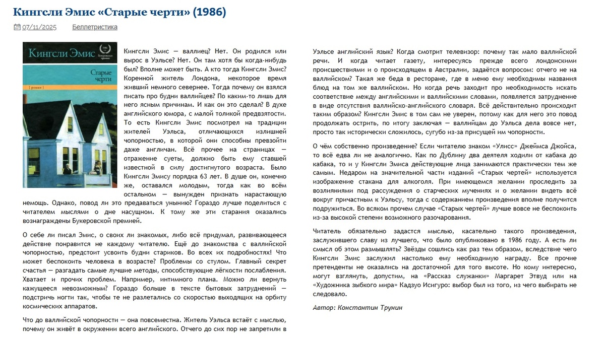 Кингсли Эмис "Старые черти" (1986) | Критика
