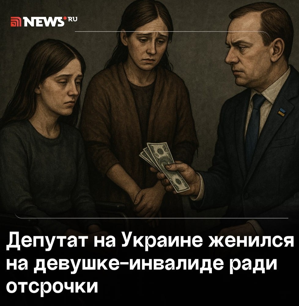 Украинский депутат «купил» жену с инвалидностью, чтобы не идти в армию. Чиновник из Винницкой области придумал, как ему казалось, гениальный план ради отсрочки. Он нашел семью с двумя сестрами, одна из которых — 18-летняя девушка с инвалидностью II группы, не отдающая отчета в своих действиях. Воспользовавшись их бедственным положением, он предложил старшей девушке 3 тысячи гривен в месяц (около 6 тысяч рублей) за фиктивный брак с больной сестрой. Используя документы, он хотел отсидеться в тылу и оформить отсрочку от мобилизации. В отношении него и сообщницы возбуждены уголовные дела по статьям «Торговля людьми» и «Уклонение от призыва во время мобилизации». ⭕️ Подписаться | Мы в MAX | Буст