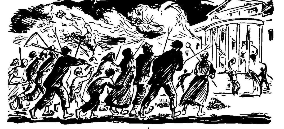 С 108-й годовщиной Октябрьской революции, товарищи! Революционные крестьяне штурмуют барский дом в Дубровицах. Фантазия неизвестного художника - иллюстрация к книге "Как жили и боролись крестьяне в крепостное время". Изд. 3-е, исправ. М., Соцэкгиз, 1937 г. Нашел и прислал подписчик нашего сообщества Олег Сахаров. Фраза "Дубровицы всегда привлекали к себе внимание людей творческих. Художников, писателей..." - обретает новые смыслы. Графика похожа на работы художника Алексея Кравченко, дачничавшего в Дубровицах в конце 1920-х. Но мы связались с потомками художника - в его архивах такой работы нет, хотя автор сайта памяти Алексея Кравченко признал, что по стилю рисунки похожи на работы Кравченко. Советские газеты 1920-х, рассказывая о Дубровицах и работавшем там музее, писали, что бывший владелец князь Голицын сбежал за границу. Авторы ошибались - князь действительно умер за границей, но в июне 1915 года. Последняя (четвертая) жена С.М. Голицына княгиня Анна Александровна Голицына вступ