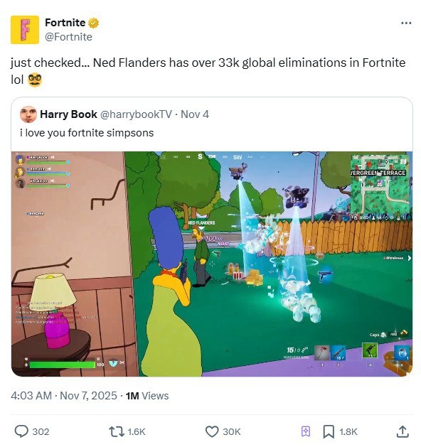 Нед Фландерс внезапно стал главным мясником Fortnite — самый милый персонаж «Симпсонов» настрелял 33 000 фрагов за время коллабы