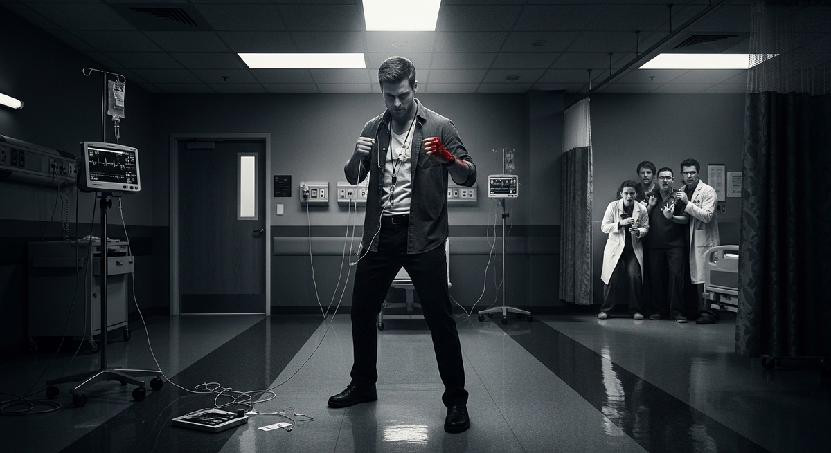 Я удивился не меньше их, когда моё тело встало, сорвало с меня аппаратуру и провода и плавно направилось к ним. Пока я шёл, группа рассыпалась на две части, углубляясь в палату. Моё тело их проигнорировало и двинулось к двери. Когда я дошёл до двери, врачи снова сбились в одну группу в дальнем конце комнаты. Они выглядели ужаснувшимися, но, казалось, собирались дать мне уйти молча.