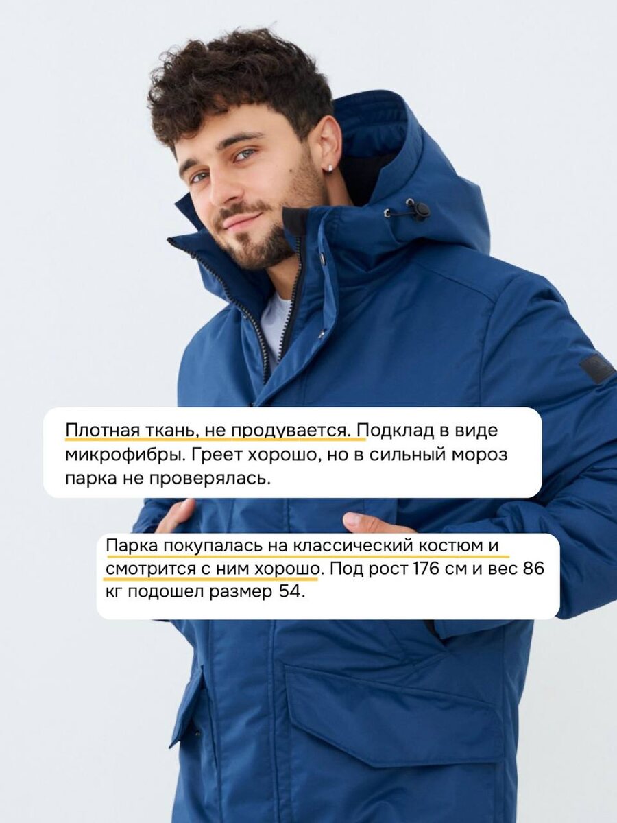😍 Сегодня делимся #отзывом о нашей мужской парке «Адмиралтейство» : "Парка порадовала плотной, не продуваемой тканью. Внутри - мягкая микрофибра, которая отлично греет. Пока в сильный мороз не проверяли, но тепло держит хорошо." Но это еще не всё! Клиент оценил и универсальность парки: "Отлично смотрится с классическим костюмом, что особенно ценно. При росте 176 см и весе 86 кг идеально подошел размер 54." Спасибо, что выбираете нас и делитесь своими впечатлениями 💛