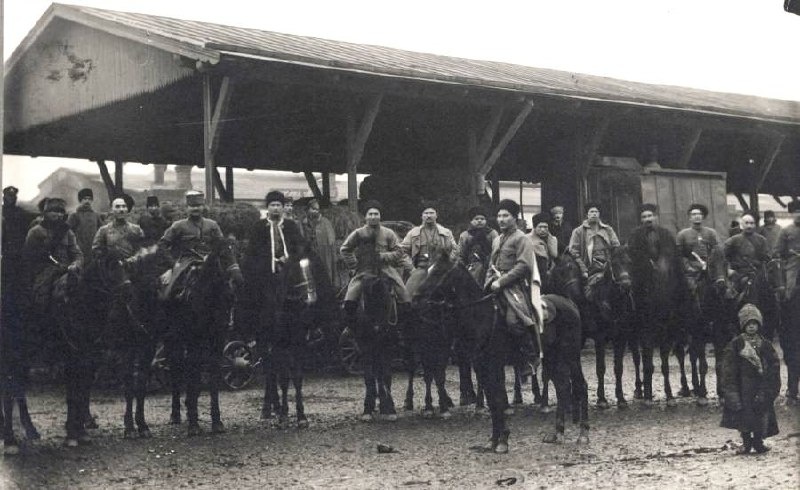 Терский казачий отряд полковника Л.Ф. Бичерахова у хранилища фуража. Дагестанская область. Лето 1918 г. (@beloedelo)