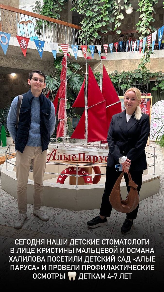 Сегодня наши детские стоматологи в лице Кристины Мальцевой и Османа Халилова посетили детский сад «Алые паруса» и провели профилактические осмотры 🦷 деткам 4-7 лет