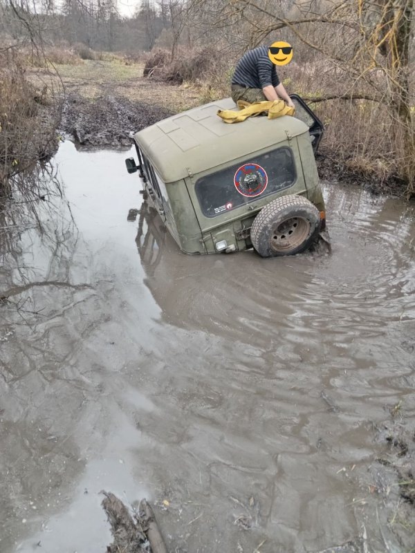 Под Курском УАЗ утонул в луже: водитель ждал помощь на крыше. Высоко сижу, далеко гляжу. Это про жителя Курской области, чей автомобиль УАЗ, скорее всего неожиданно для самого владельца, увяз в глубокой луже. В ожидании помощи мужчина коротал время на крыше "внедорожника". Ни сигнал SOS из Курского района откликнулся Курск Джип Спас. На помощь обычному УАЗу пришел "УАЗ Патриот". Не прошло и получаса, как пленник черной жижи оказался на свободе. (фото - Курск Джип Спас)