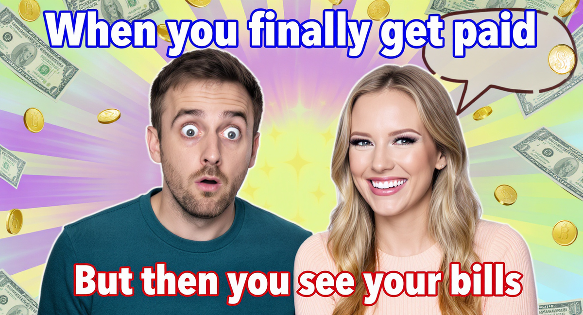 — Через 5 минут: квитанции, интернет, кошка, коммуналка и та самая подписка, которую ты забыл отменить в 2021 году. И вот ты снова не миллионер, а гордый владелец оплаченных счетов 😅 Она — сияет, как реклама успешного успеха.