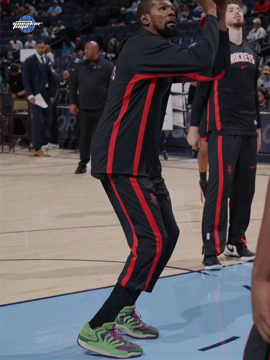 Кевин Дюрант показал Nike KD 18 в расцветке Skunk На игре против Memphis Grizzlies он выкатил новую пару Nike KD 18, вдохновлённую легендарными Nike SB Dunk Skunk Пара выполнена в фирменных фиолетово-зелёных тонах, с лохматым замшевым верхом и серыми вкраплениями на мидсоли Пока эта расцветка остаётся игровым PE, но зная, как Nike любит превращать эксклюзивы в релизы — надежда есть 👀 IT'S TIME FOR SNEAKERS А ты бы хотел, чтобы пара вышла? 🔥 — Конечно! ❤️ — Нет, пусть останется эксклюзивом