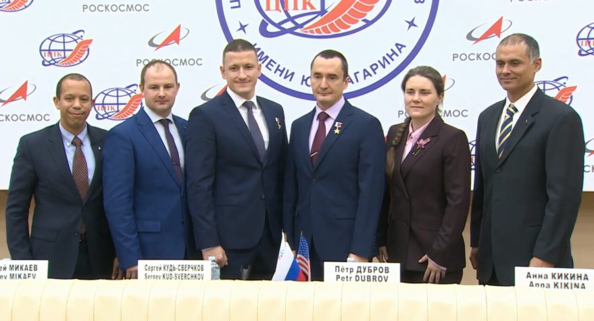 Экипаж корабля «Союз МС-28» провел предполетную пресс-конференцию в Звездном Городке