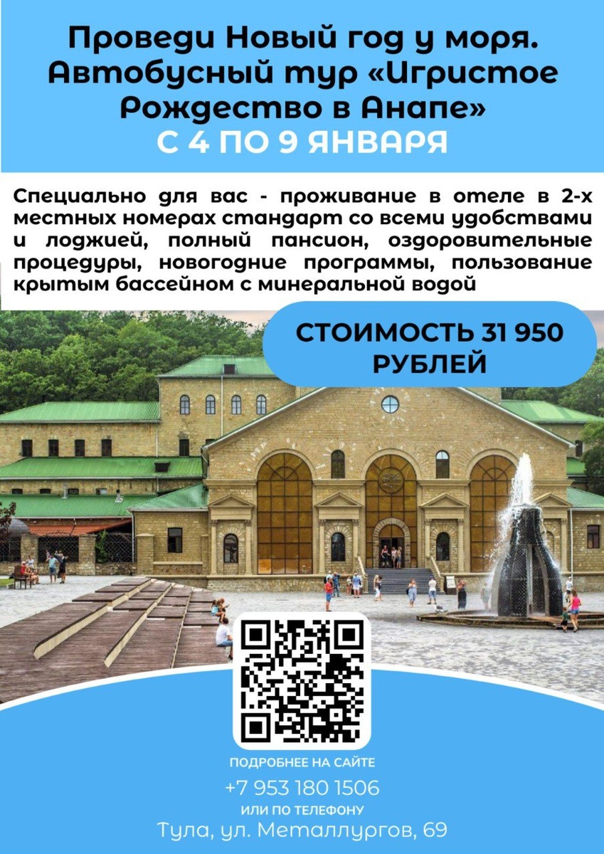 ❄️ Друзья! А вы уже знаете, как встретите Новый Год и проведёте новогодние праздники? 🥳 Если вы до сих пор в раздумьях, у нас для вас есть отличные предложения от нашего партнера - туроператора «Тула Travel»! Подробная информация – по QR-коду на изображении!