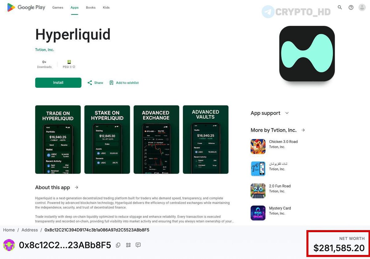 🚫 Фейковое приложение Hyperliquid появилось в Google Play – ZachXBT
