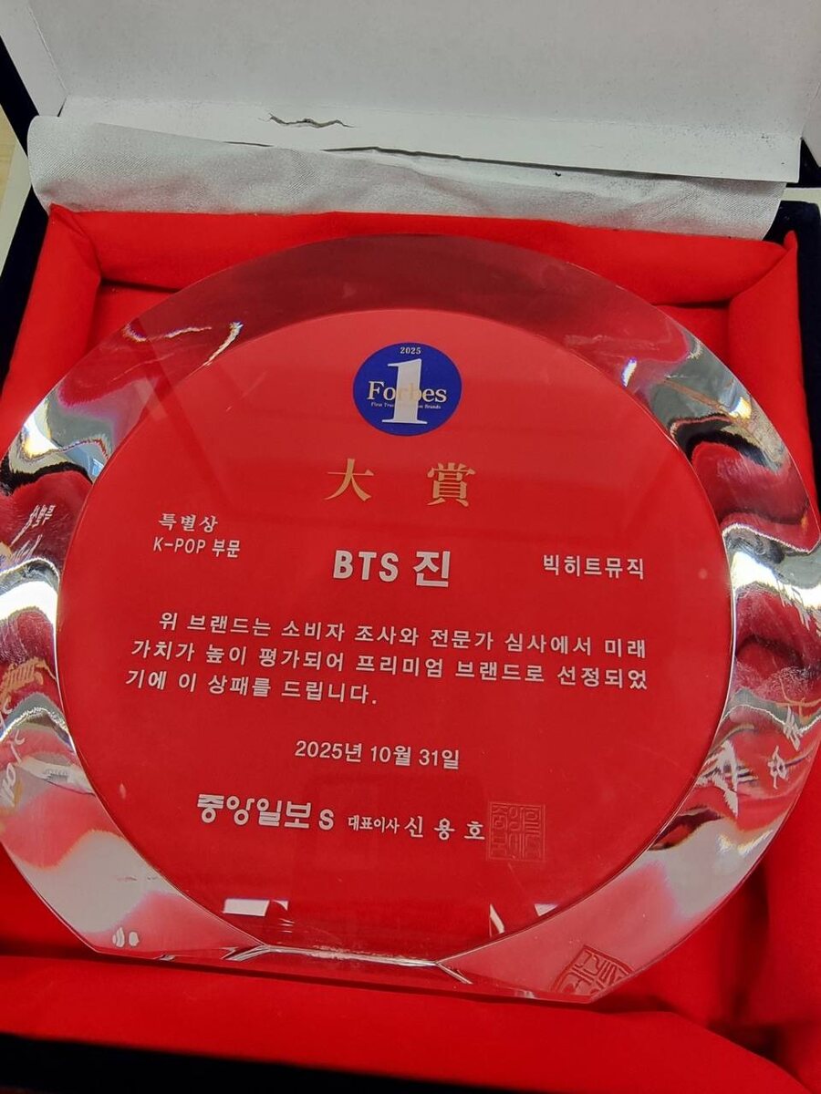 🍊 Джин стал победителем Forbes Special Award №1 в категории к-поп певцы и актёры на голосовании, провёденном с 10 по 30 сентября в рамках Idol Champ. Эта табличка вручается в знак признания выбора в качестве премиального бренда, высоко оцененного за его будущую ценность благодаря исследованию потребителей и экспертному обзору. #JIN @kumihobts