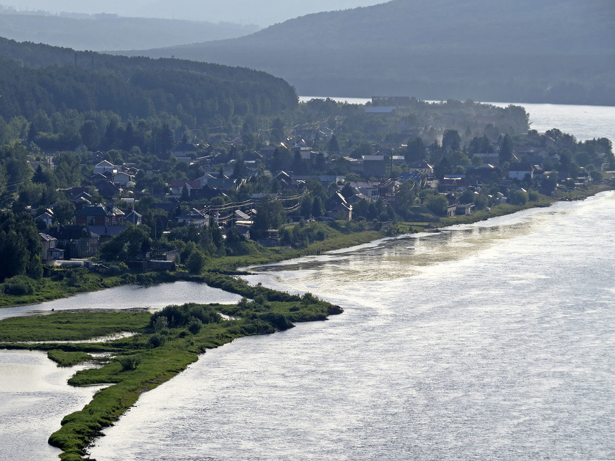 Овсянка - крупное село (2,2 тыс. жителей) в плавном изгибе реки за 15 километров от Красноярска: