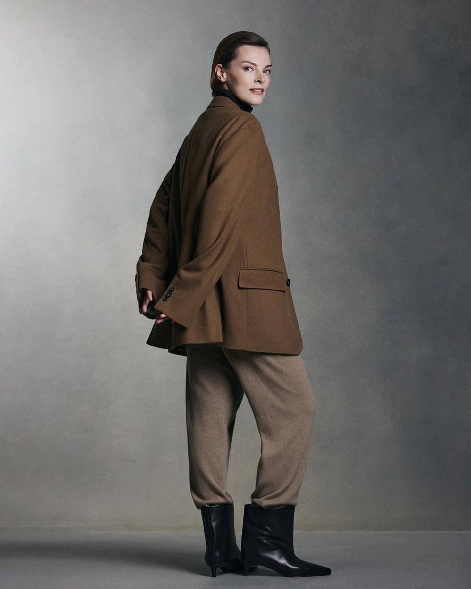 Героиня нашей новой истории — Валентина Камаева, анестезиолог-реаниматолог из Рязани. Мама двух дочек, а с недавнего времени еще и модель находит в своем расписании время для хобби — каждую неделю ходит на тренировки по фигурному катанию: «Несмотря на усталость, рутину, домашние дела, я все равно надеваю коньки, иду и тренируюсь. И после этого у меня появляются силы на остальные вещи». В нашей съемке внешняя хрупкость соединилась с внутренней силой через элементы мужского гардероба. На Валентине — пиджаки из мягкой шерсти и плотного вельвета в сочетании с классическими брюками из шерсти и шелка в деликатную полоску и расслабленными вязаными джоггерами из шерсти и кашемира. На изящное платье макси из шерсти с кашемиром она накидывает лаконичный пиджак-френч из ворсистой шерсти. В его плечах нет жестких элементов, поэтому он отлично садится на хрупкую фигуру. А поверх объемного джемпера — длинное пальто Harmony — наш бестселлер с новым поясом из натуральной кожи. Эти и другие новинк