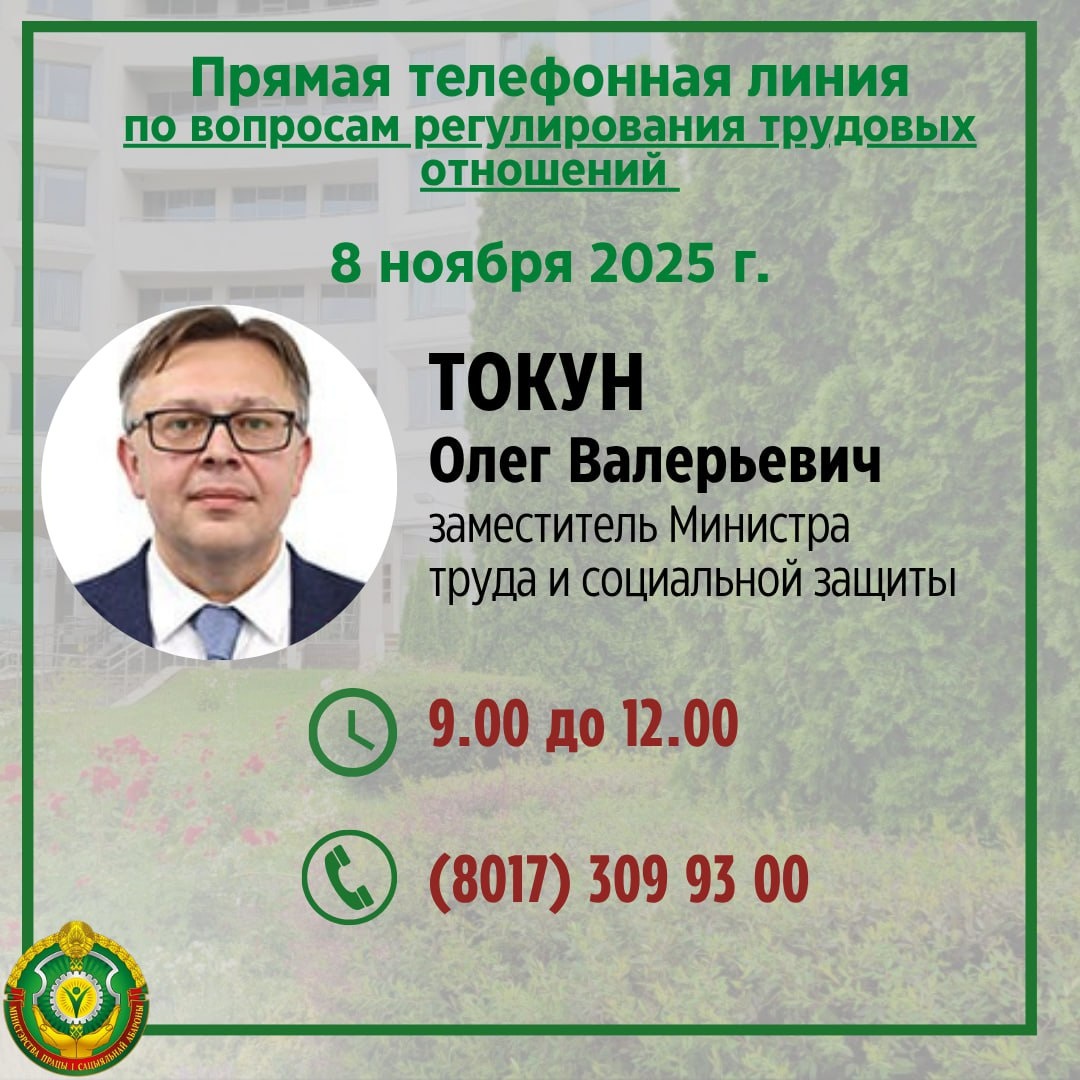 ⚡️Завтра прямая телефонная линия у заместителя Министра Олега Токуна
