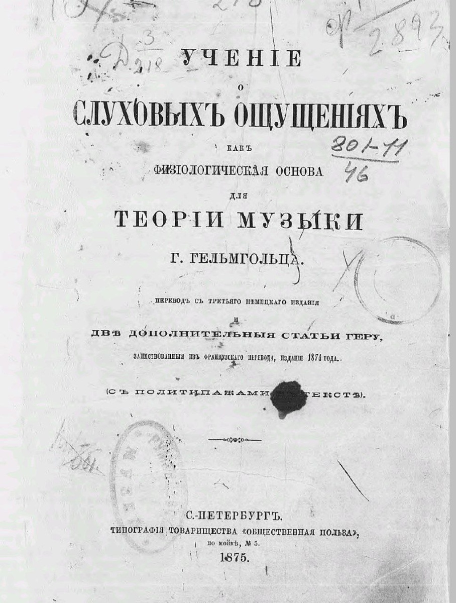 Книга Германа Гельмгольца «Учение о слуховых ощущениях как физиологическая основа для теории музыки» (1863