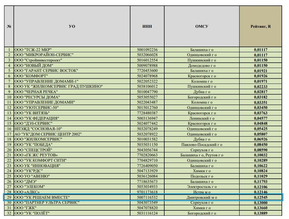 Уважаемые жители! Рады поделиться отличной новостью: опубликован рейтинг управляющих организаций Подмосковья за 3 квартал 2025 года! По итогам оценки Министерства по содержанию территорий и государственному жилищному надзору Московской области наша управляющая компания «Решаем вместе» добилась значимых результатов: ➖1‑е место в Дмитровском муниципальном округе; ➖подъём на +5 позиций в общеобластном рейтинге: с 34‑го на 29‑е место среди 809 управляющих компаний региона! Эти показатели — результат нашей системной работы и вашего активного участия в жизни дома. Мы ценим доверие жителей и стремимся поддерживать высокий стандарт качества услуг. Что это значит для вас? ✔️ стабильное содержание общего имущества; ✔️ оперативное реагирование на заявки; ✔️ внедрение современных решений в управлении домом. Мы не собираемся останавливаться на достигнутом! Будем и дальше: 💚совершенствовать процессы обслуживания; 💚учитывать ваши пожелания; 💚добиваться лучших результатов для комфортного