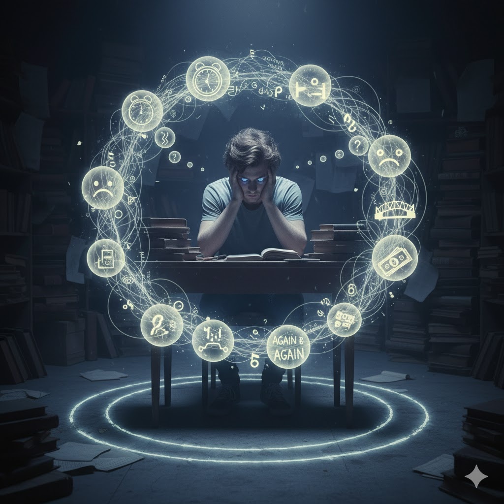 Привет, мой дорогой читатель! Давай сегодня поговорим о том, что знакомо абсолютно каждому из нас. О том тихом, навязчивом госте, который иногда селится в нашей голове и шепчет одно и то же: «А что, если?», «Надо было сказать иначе», «Почему это случилось именно со мной?». Ты узнаёшь его? Это ощущение, будто ты застрял в поезде, который едет по бесконечному кольцевому маршруту, и пейзаж за окном никогда не меняется. Я хочу, чтобы ты знал: это не просто твоя особенность. У этого состояния есть своё имя, и даже своя научная причина. Называется оно руминация. И это не приговор, а просто привычка нашего мозга, которую можно и нужно изменить. Слово «руминация» пришло из психологии, но звучит оно немного строго для такого простого, житейского дела. По сути, руминация — это и есть та самая «заевшая пластинка»: непрерывное, циклическое, обычно негативное пережёвывание одних и тех же мыслей, опасений и воспоминаний. И вот здесь подключается научный факт, который поможет тебе почувствовать благо