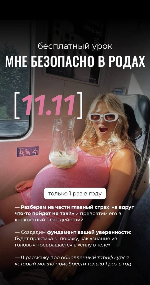 Последние дни я говорила вам о боли, о страхах, о системе, о знаниях, которые должны стать плотью и кровью. Всё это — части одного целого. Целого под названием «Я — ХОЗЯЙКА своих родов». И этот путь начинается не с заучивания поз для родов. Он начинается с одного, но самого главного чувства. С чувства БЕЗОПАСНОСТИ. Не той, что зависит от договора с роддомом или вежливости врача. А той, что живет внутри тебя. Нерушимой. Непоколебимой. Чувство, с которым никакие «непредсказуемости» и «сложные сценарии» не страшны. Потому что ты знаешь — с тобой твое тело, твоя интуиция и твоя сила. И этого достаточно. Я хочу, чтобы каждая женщина узнала это чувство. Прямо сейчас. Поэтому я приглашаю вас на бесплатный урок «МНЕ БЕЗОПАСНО В РОДАХ» 🇯🇵На этой встрече мы: — Разберем на части главный страх — «а вдруг что-то пойдет не так?» — и превратим его в конкретный план действий. — Создадим фундамент вашей уверенности. Я покажу, как «знание из головы» превращается в «силу в теле» — на примере од