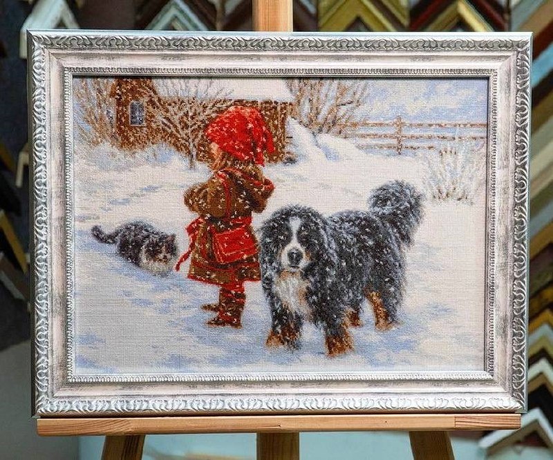 Оля из Москвы вышила вот такой замечательный зимний сюжет!❄️ Багетик выбрали холодного оттенка, чтобы хорошо сочетался с вышивкой. Как вам работа и оформление?☺️