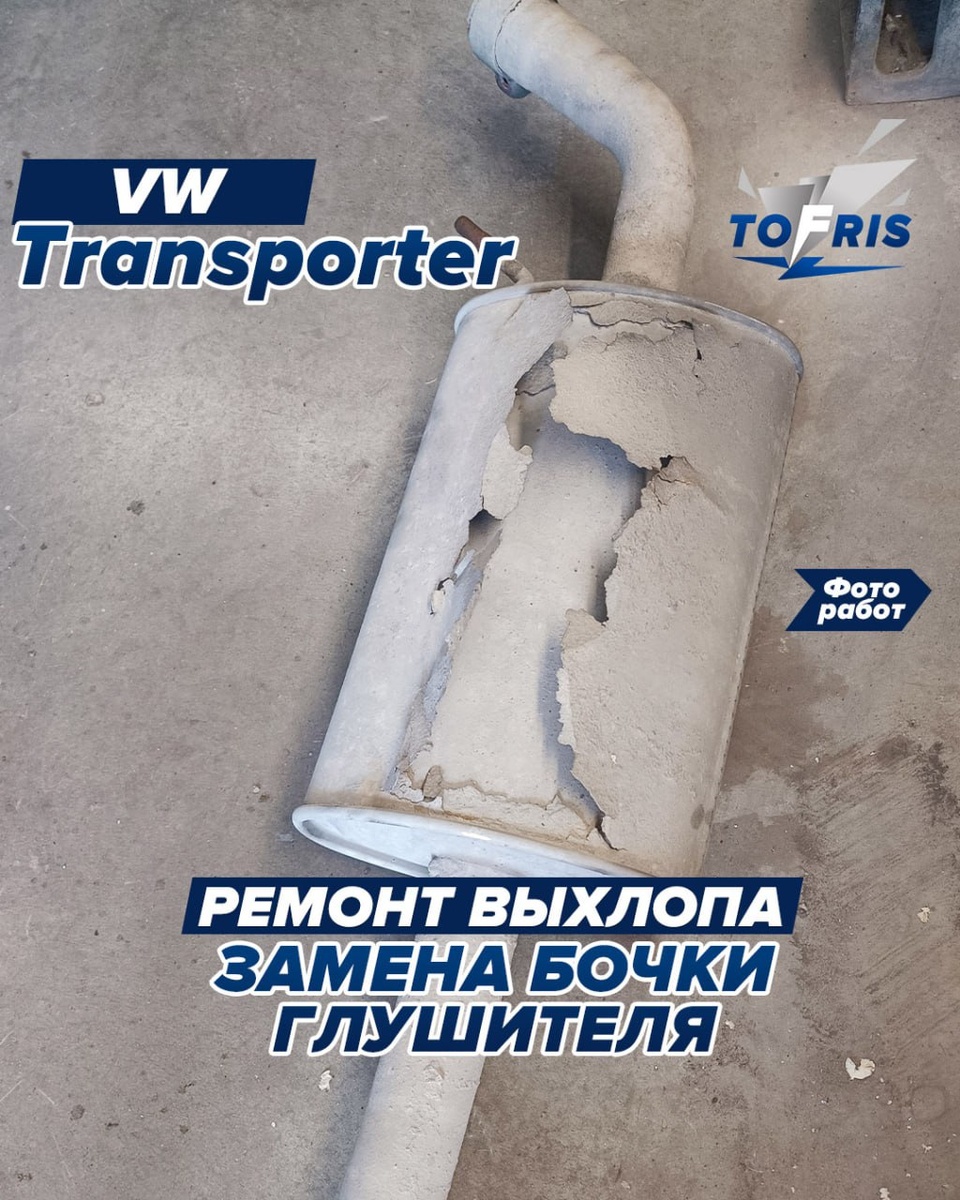 К нам заехал Volkswagen Transporter 2002 года — с диким треском, прогнившей «бочкой» глушителя и новым польским глушителем в багажнике. Подняли на подъёмник — а там сюрприз: прогнила не только бочка, но и участок трубы. ✅ Заменили старый глушитель на новый ✅ Переварили трубу ✅ Все сварочные швы обработали жаростойкой краской После работ выхлоп снова стал тихим и комфортным — владелец уехал довольным. Но главная мораль истории: 👇 Хозяин даже не знал, что у TOFRIS собственное производство глушителей из нержавейки AISI 409 и AISI 304, и что аналогичная бочка у нас стоила бы дешевле польской, при этом служила бы заметно дольше. Пообещал: в следующий раз за нержавейкой — только к нам. ✅ Если ваш глушитель прогорел или не найти замену Мы изготовим новую «бочку» на заказ или подберём универсальную по вашим размерам. Оставить заявку можно по ссылке: 🔗 https://tofris-shop.ru/services/glushitel-pod-zakaz 📍 Адрес сервиса: г. Тольятти, ул. Ларина, 141/6, бокс 70 🕗 Пн–Пт: 8:00–17:00 👉 З
