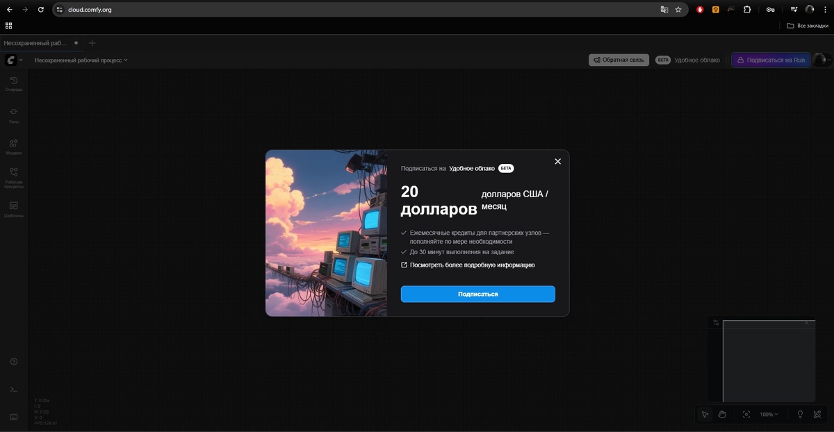 Comfy Cloud уже доступен Стоит 20$ в месяц, сюда входит: - Работа на GPU A100 с 40GB VRAM - Максимальная длительность одного workflow: 30 минут - Оплата только за активное время GPU (простой не тарифицируется) - 8 GPU часов в день в базовом балансе - Возможность докупить дополнительные часы - Неиспользованные часы переносятся на следующий месяц - Доступ к 200+ предустановленным моделям - Поддержка топ-10 популярных custom nodes По безопасности: - Все данные зашифрованы - Полная конфиденциальность проектов - Очередь до 4 workflow одновременно - $10 ежемесячного API баланса для Partner Nodes Скоро: - Параллельное выполнение нескольких workflow - Загрузка собственных fine-tuned моделей https://www.comfy.org/cloud