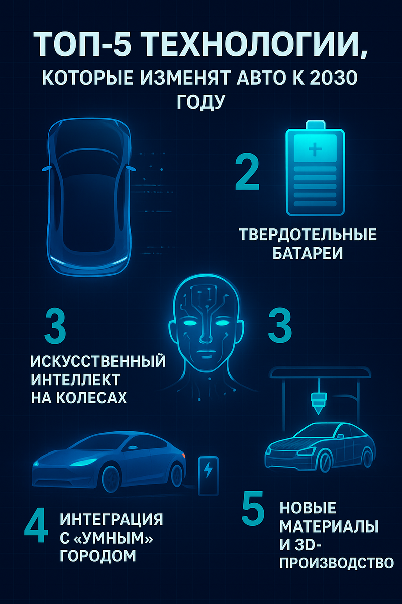 ⚙️ ТОП-5 технологий, которые изменят авто к 2030 году