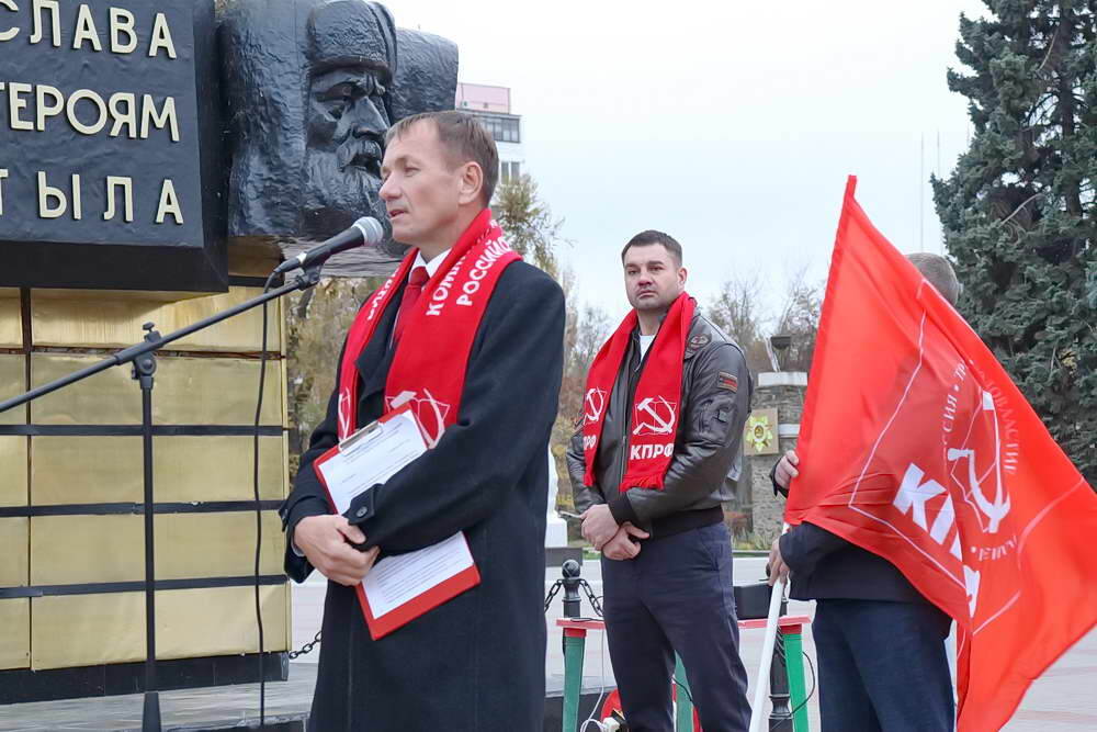 Митинг КПРФ на площади Победы в честь 108 годовщины Великой Октябрьской социалистической революции