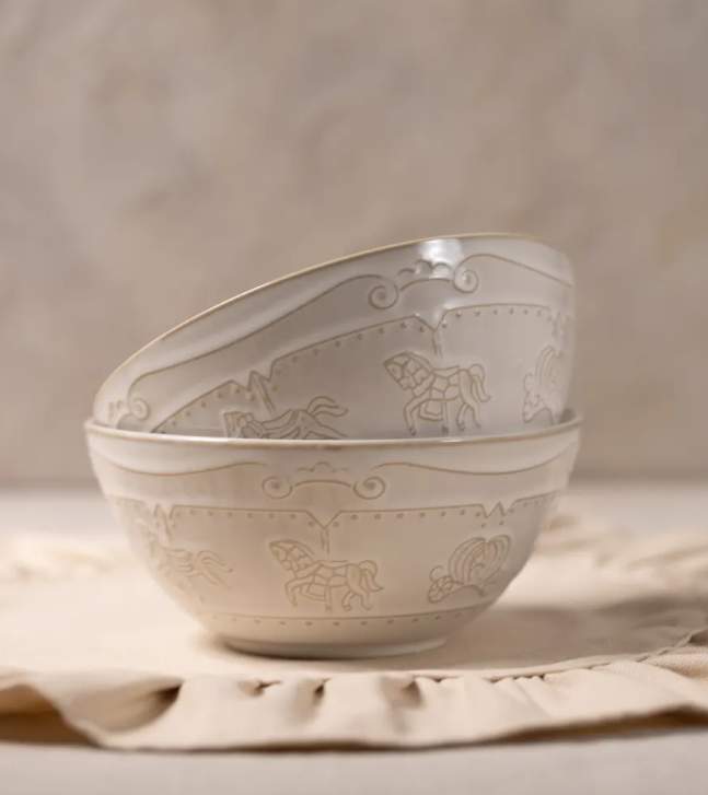 Идеальный вариант для сервировки новогоднего стола: минималистично, эстетично и нежно. Карусельные лошадки добавляют особый шарм и напоминают нам, что в праздники все мы немного дети. У продавца также есть плоские тарелки в таком же стиле, если собрать целый набор — эффекта вау не избежать!