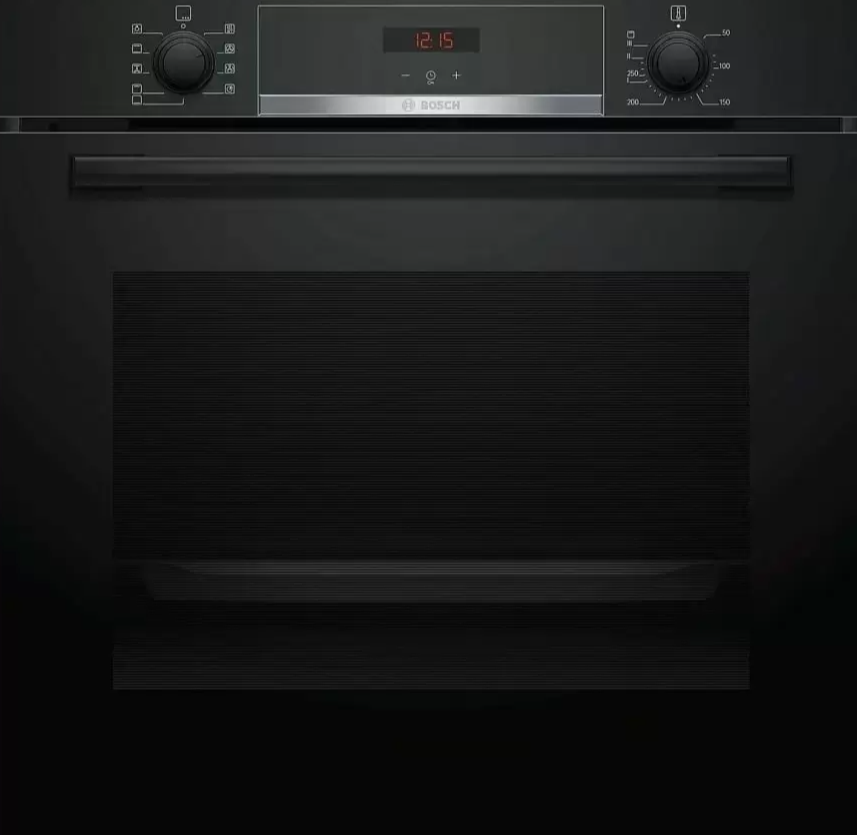 Встраиваемый духовой шкаф Bosch HBA534EB0 сочетает проверенную механическую надёжность с современными технологиями нагрева и управления. Это полноценная электрическая модель с конвекцией, 3D-нагревом и вместительной камерой. Конструкция рассчитана на ежедневное использование и подходит для большинства кухонь стандартного формата. Объём духовки — 71 литр, этого достаточно для приготовления крупных блюд: целой курицы, формы для лазаньи или противня выпечки. Камера выполнена из прочной эмали GraniteEnamel — она устойчива к перепадам температуры, не впитывает запахи и легко очищается. Дверца — тройное термостойкое стекло, которое удерживает тепло внутри. Внешняя поверхность при этом остаётся умеренно тёплой, а не обжигающей. Петли с механизмом SoftClose обеспечивают плавное закрывание без рывков. Внутренние направляющие съёмные, их можно переставить на несколько уровней. Это удобно, если нужно запекать сразу несколько блюд. Преимущества конструкции: Bosch HBA534EB0 поддерживает 7 режимов р